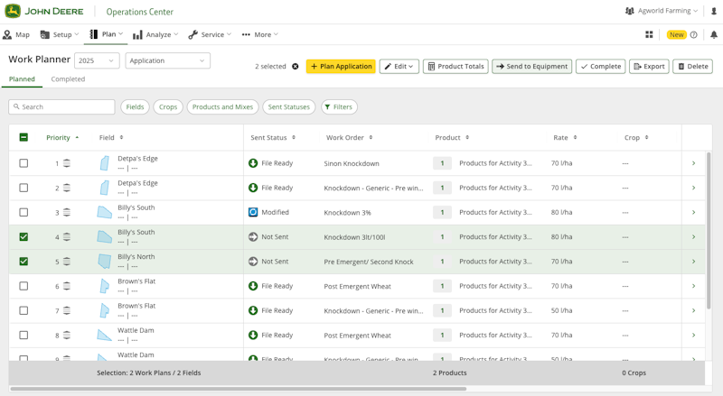 By sending activities to Work Planner, operators can access spray jobs directly from their equipment displays, reducing manual entry and improving data accuracy and increasing operational efficiency. Once the application is completed, it will be sent back to Agworld as an Actual. You can view the process in more detail here.